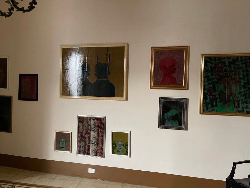 Entropia, nella meccanica statica, è l’ordine di grandezza per definire il disordine di un sistema, la sua tendenza al Kaos. In queste opere della “Serie Dorata”, l’impianto creativo si sviluppa sempre partendo dal dialogo tra cornici e soggetti ritratti, ma frequentando ambiti di gusto differenti rispetto alla produzione classica di questa serie, più vicine al modernariato e alle mode susseguitesi nei decenni ’60 ’70 ’80 ’90. Inoltre, scompare il fondo pittorico sostituito da un fondo “pieno” in carta. E proprio la contaminazione delle carte dei soggetti e dei fondi che determina l’entropia di queste opere, dove il pubblico può decidere se il momento entropico si sta evolvendo in un nuovo ordine, generando i soggetti ritratti, oppure se ne sancisce definitivamente la loro dissolvenza, nell’infinito indeterminato dello sfondo.