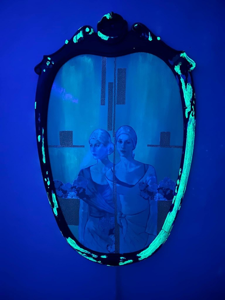 In un momento dove la deflagrazione dell’Intelligenza Artificiale è stata appena innescata, MyArtWord si caratterizza per l’utilizzo di tecnica mista fatta di pittura e collage, sia analogico che digitale, e proprio per la parte digitale stupisce sapere che lo strumento utilizzato, non è una sofisticata applicazione di ultima generazione, ma il comunissimo programma di scrittura Word, confermando ancora una volta che il talento artistico e creativo della Rutigliano la rende cacciatrice di bellezza lì dove molti non ne percepiscono lontanamente l’esistenza.